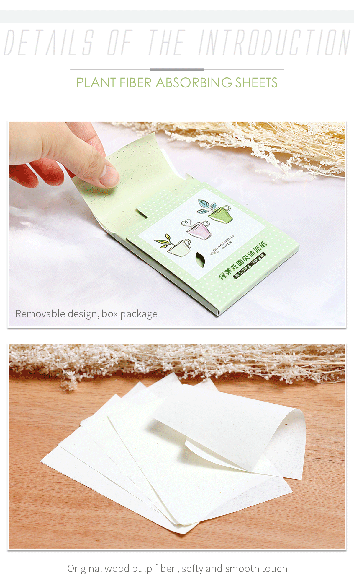Material: Green tea/Jasmine/Dandelion/Flax blue